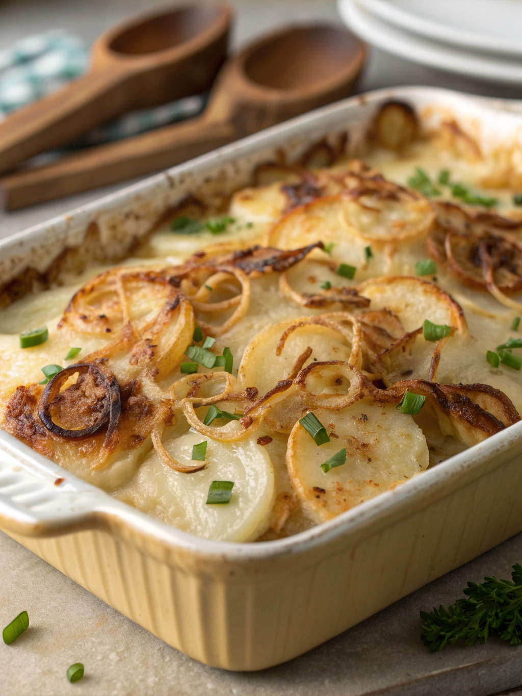 This French Onion Potato Casserole combines two beloved comfort foods – creamy potato casserole and the rich flavors of French onion soup – into one incredible side dish. The caramelized onion flavor permeates the creamy potatoes while the crunchy topping provides the perfect textural contrast. It’s an elevated take on traditional potato casserole that pairs beautifully with everything from holiday roasts to simple weeknight chicken dinners.