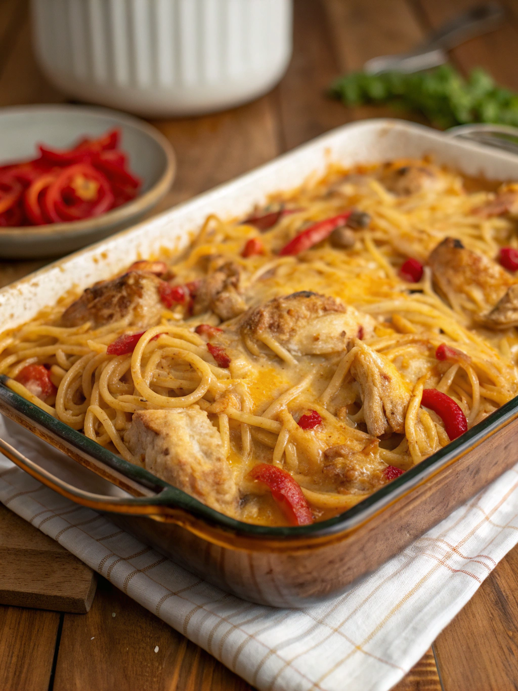 1. Spicy Southern Cheesy Chicken Spaghetti Casserole