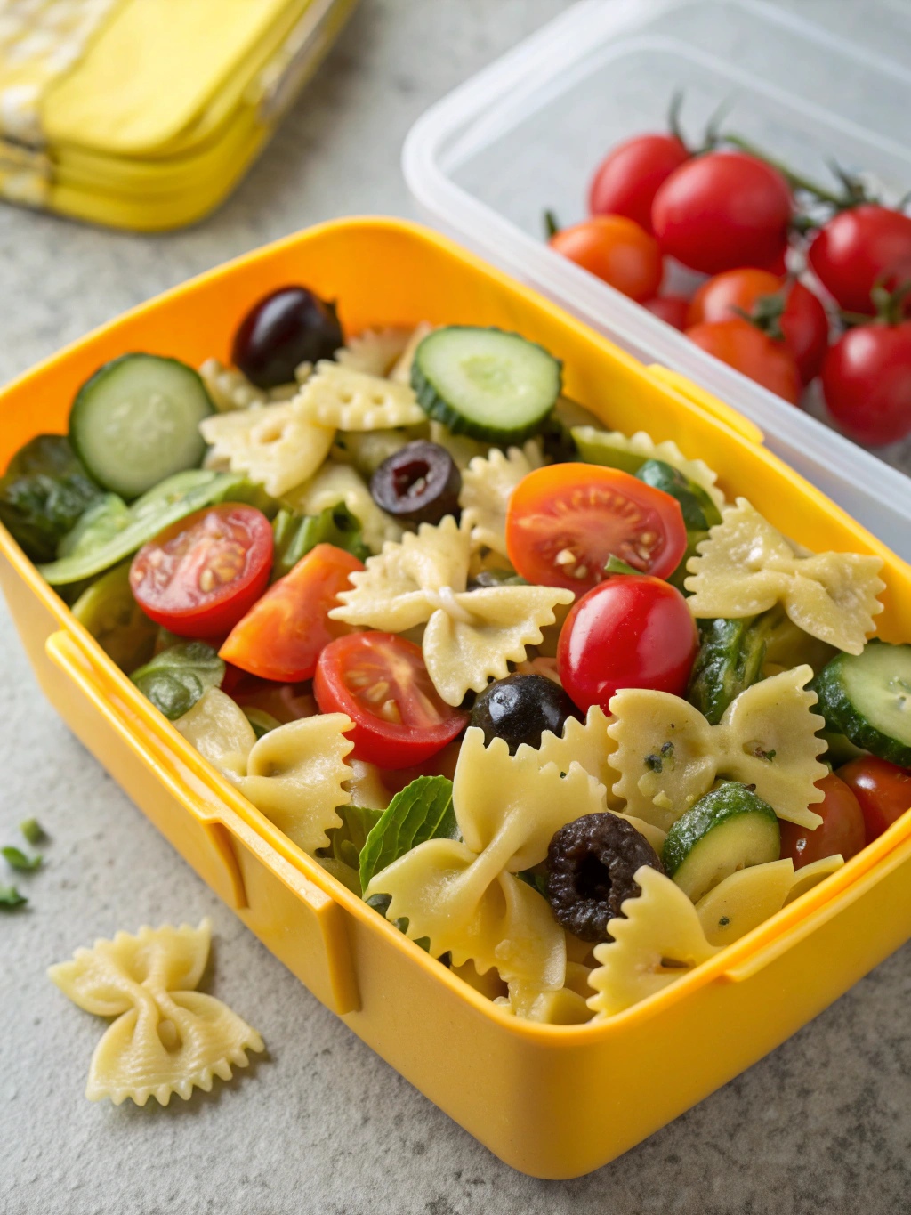 Cold pasta salad is a lunch box superstar that actually tastes better after sitting for a few hours as the flavors meld together. Using fun pasta shapes like bowties or wheels makes this lunch more appealing to kids, while the endless mix-in possibilities ensure it never gets boring. Add a protein source like diced chicken or mozzarella balls to make it more filling.