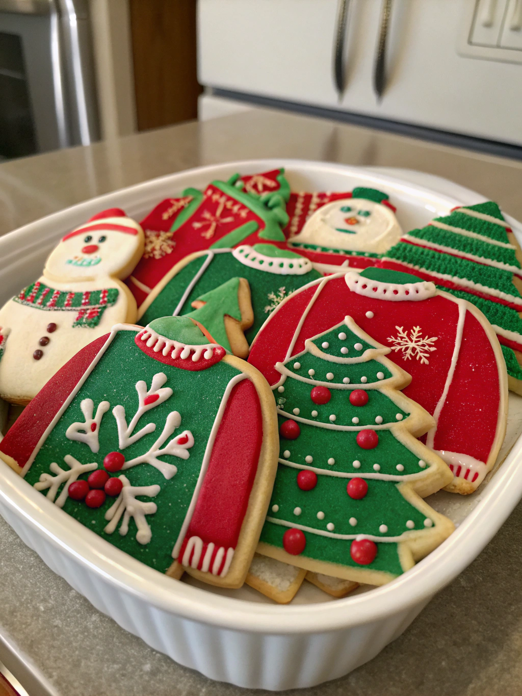 Bring some humor to your holiday cookie platter with these adorable ugly sweater sugar cookies! The step-by-step decorating guide makes it easy to create these conversation-starting treats that taste as good as they look. These cookies are perfect for ugly sweater parties, gift exchanges, or anytime you want to add some whimsical fun to your Christmas dessert table.
