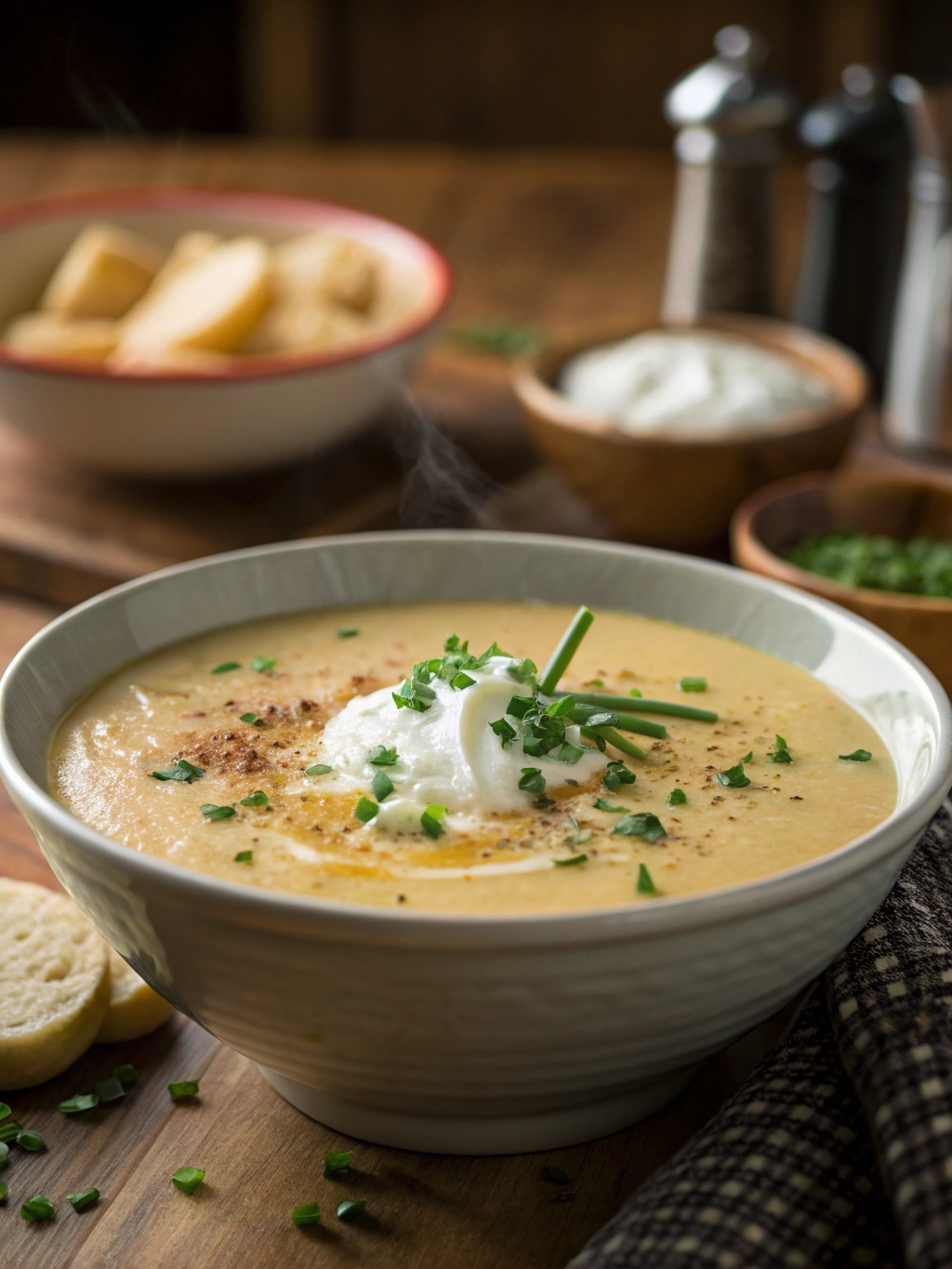 This velvety potato soup is the ultimate comfort food, with its rich, creamy texture and familiar, heartwarming flavor. The humble potato transforms into something magical in this simple yet satisfying soup that’s perfect for those days when you need something soothing and uncomplicated. Top with crispy bacon, fresh chives, and a sprinkle of cheese for a complete meal that everyone will love.