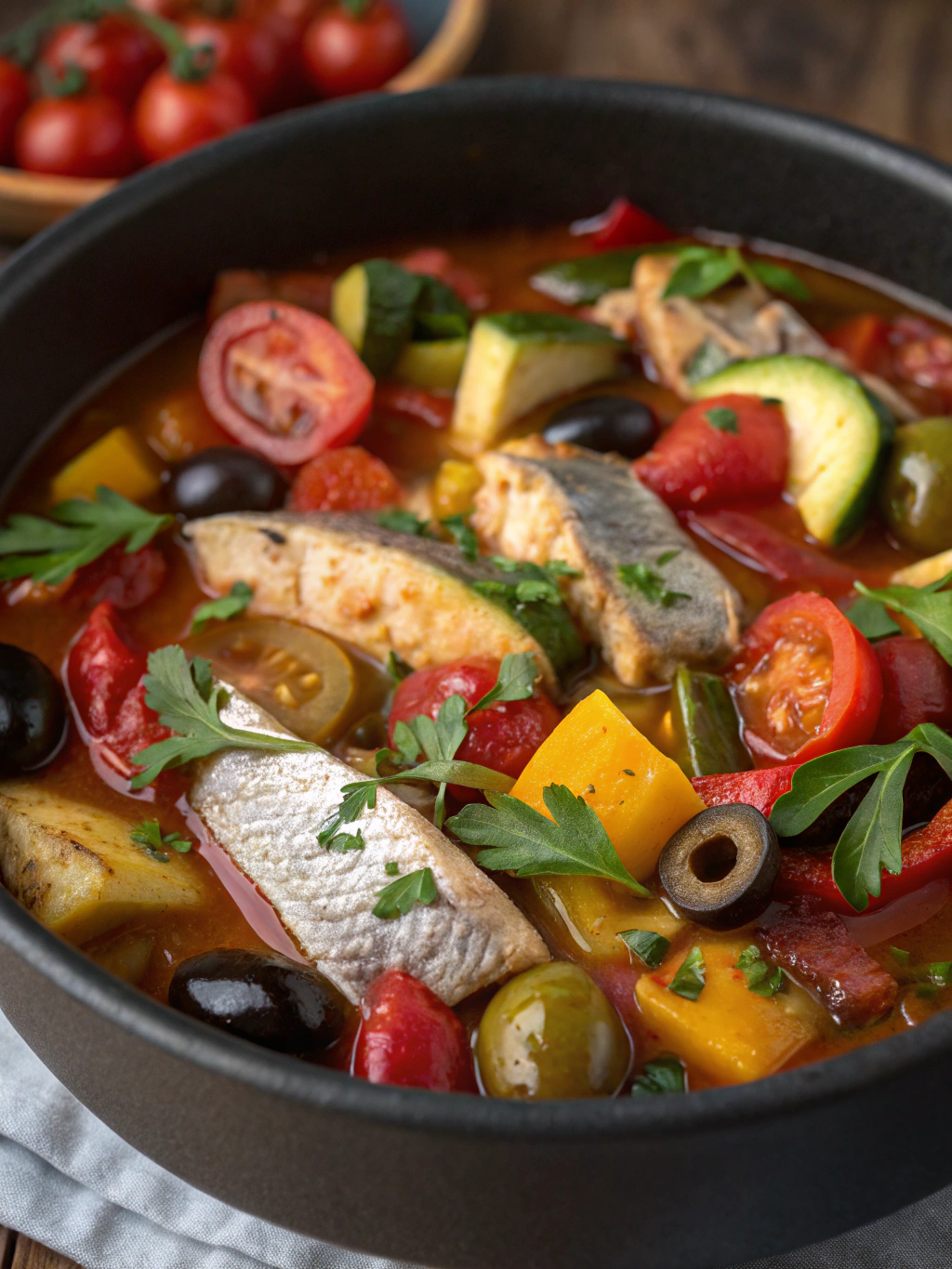 Bursting with vibrant flavors of the Mediterranean, this hearty stew combines colorful vegetables, beans, and aromatic herbs in a tomato-based broth. The olive oil, garlic, and herbs like rosemary and thyme transport you straight to the Mediterranean coast with every spoonful. This nutritious, plant-forward stew is perfect for meal prep and actually tastes even better the next day as the flavors continue to develop.