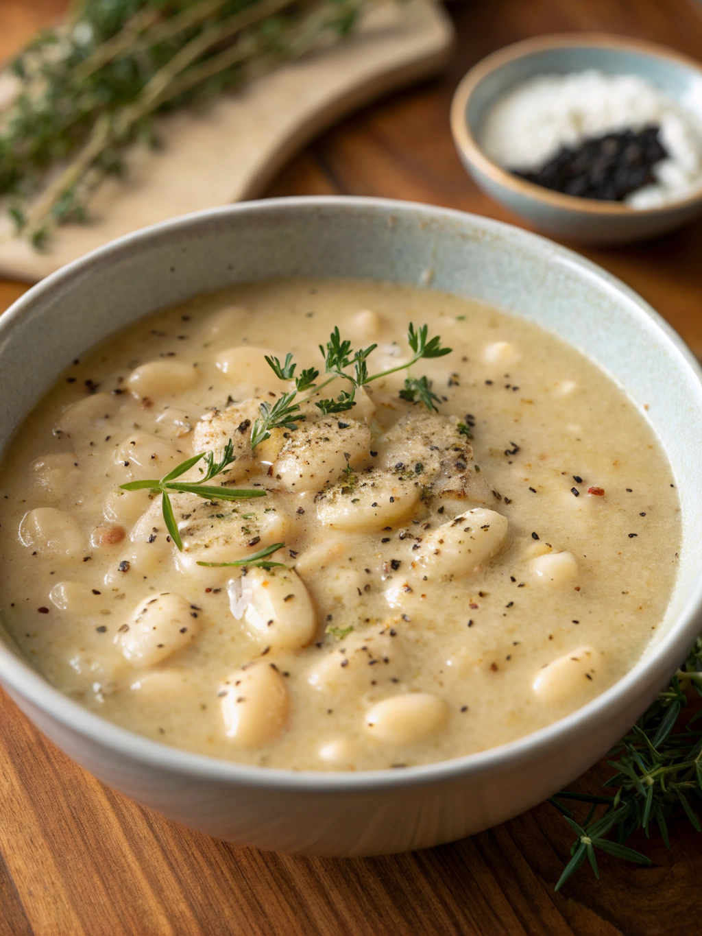 This rustic white bean soup combines creamy cannellini beans with aromatic vegetables and herbs for a simple yet satisfying meal. The beans break down slightly as they cook, naturally thickening the broth and creating a hearty texture that’s perfect for dipping crusty bread. High in protein and fiber, this nourishing Mediterranean-inspired soup proves that wholesome food can also be incredibly delicious.