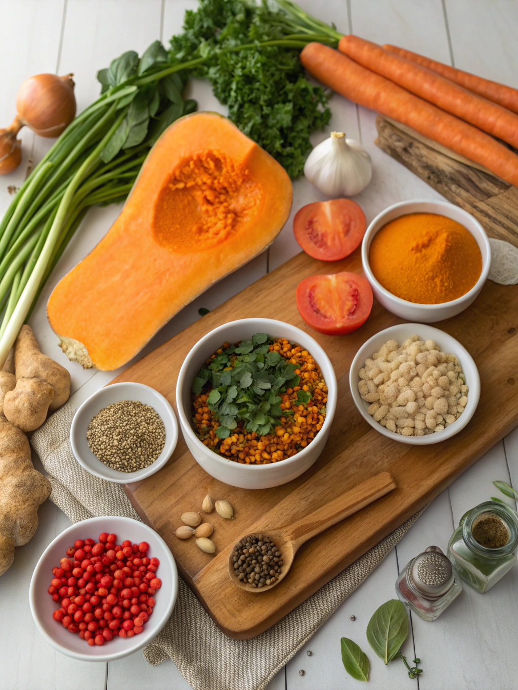 Ingredients List for Anti-Inflammatory Butternut Squash and Lentil Soup