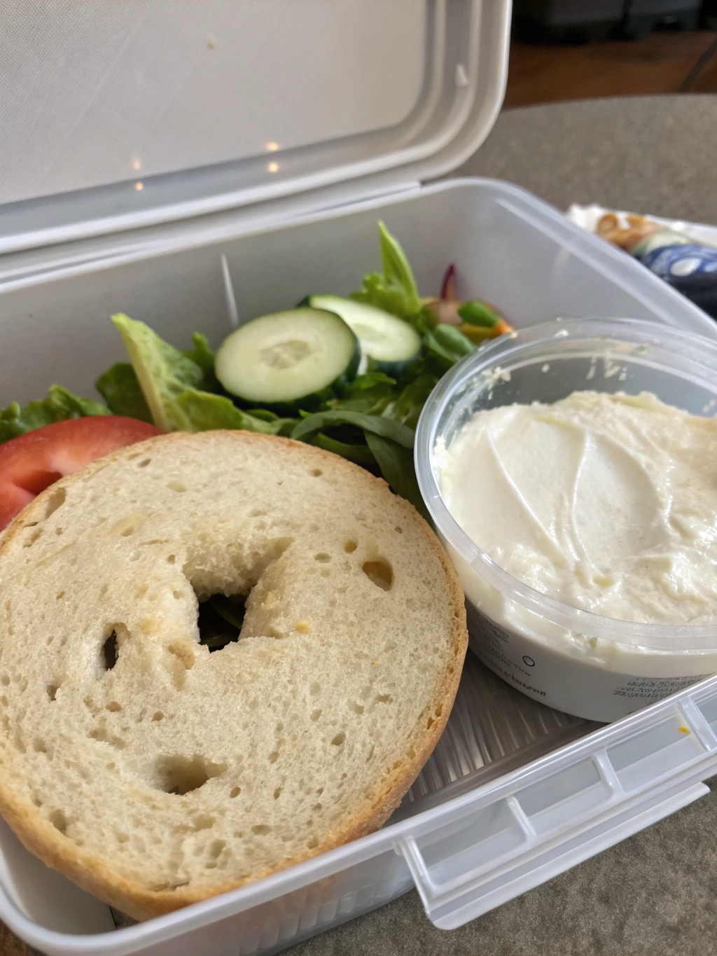 If desired, include a small container of hummus for additional dipping or a small yogurt for extra protein and calcium. These additions transform a simple bagel lunch into a balanced meal with multiple food groups.