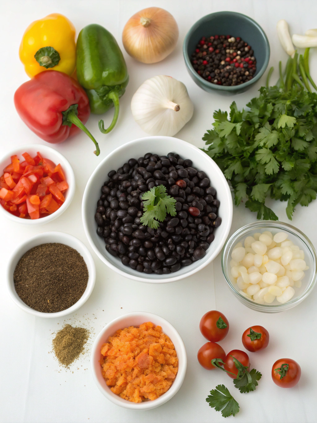 For this nourishing black bean soup, gather these simple yet flavorful ingredients:
