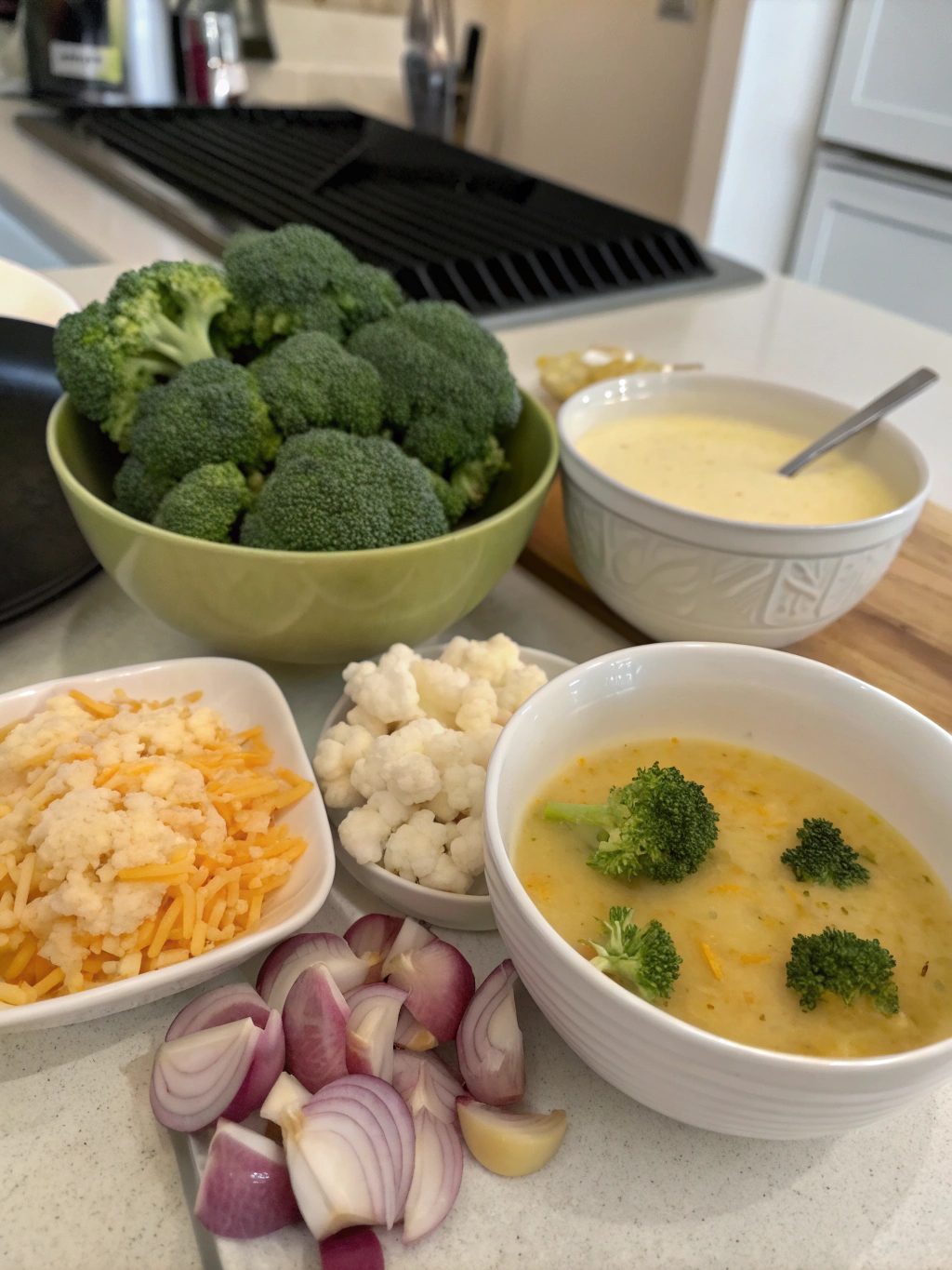 This broccoli cheddar soup delivers 25% more vitamin C than typical cream-based soups, while providing substantial calcium from both the broccoli and cheese.