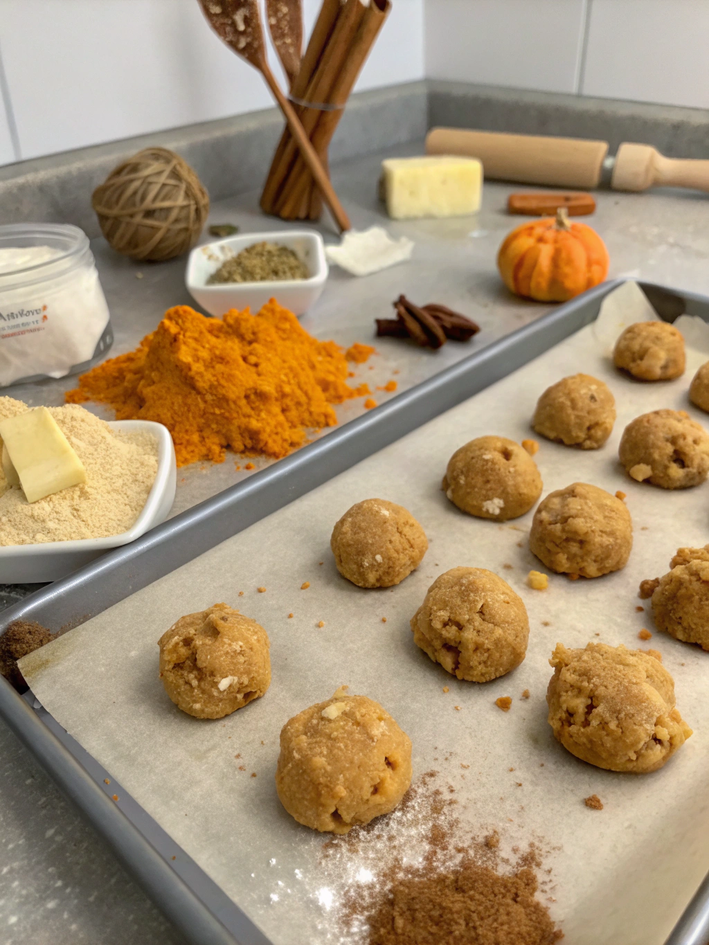 - Preheat your oven to 350°F (175°C) and line baking sheets with parchment paper. Using a cookie scoop or tablespoon, drop rounded portions of dough onto the prepared baking sheets, spacing them about 2 inches apart.