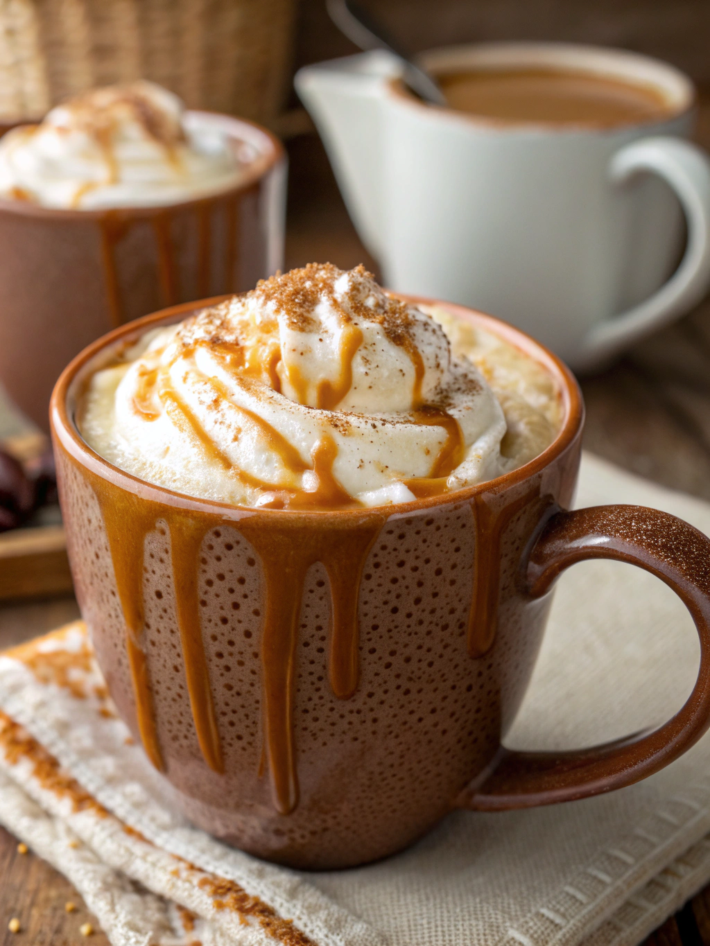 - Finish with a light drizzle of remaining caramel sauce and a sprinkle of cinnamon. For special occasions, add a dollop of whipped cream between the latte and final caramel drizzle. Serve immediately while hot and aromatic.