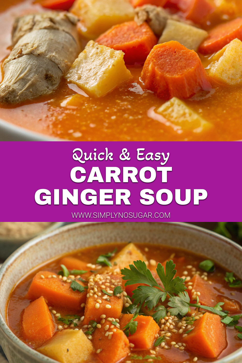This carrot ginger soup provides significant nutritional benefits while maintaining a moderate calorie count. Studies show that consuming foods rich in beta-carotene (like carrots) may reduce the risk of certain cancers by up to 20%, while ginger has been shown to reduce muscle pain and soreness by approximately 25%.