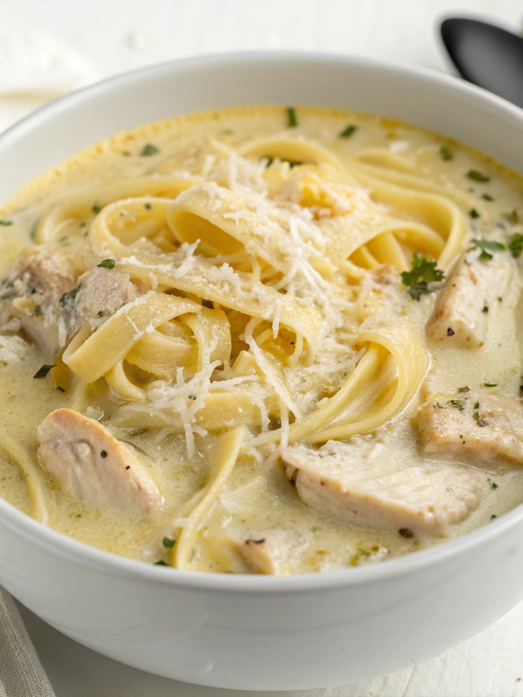 Ready to warm up your evening with something special? Give this Chicken Alfredo Soup a try tonight and discover why it’s becoming a favorite in kitchens everywhere. Share your results or modifications in the comments below – we’d love to hear how you made this recipe your own!
