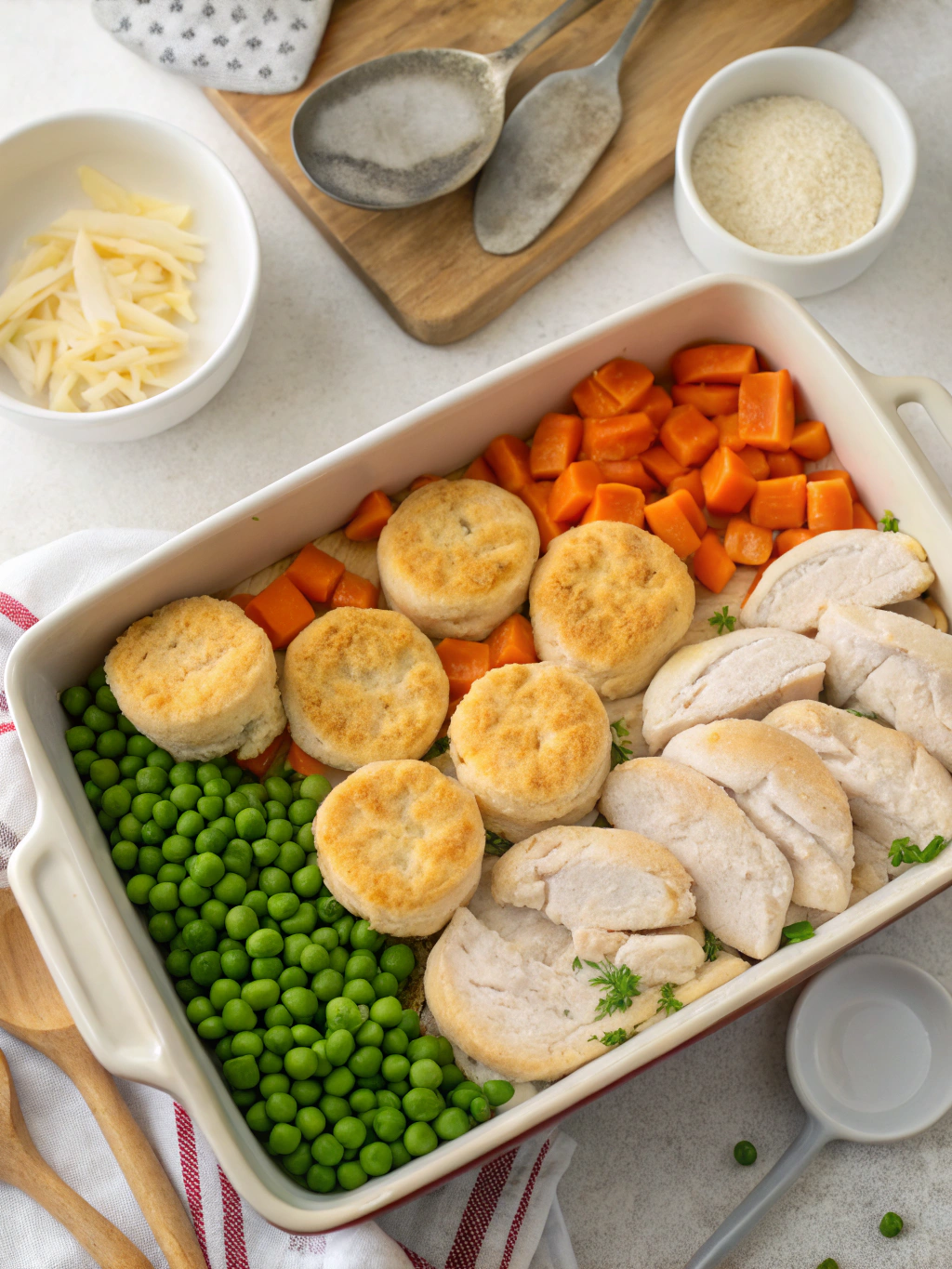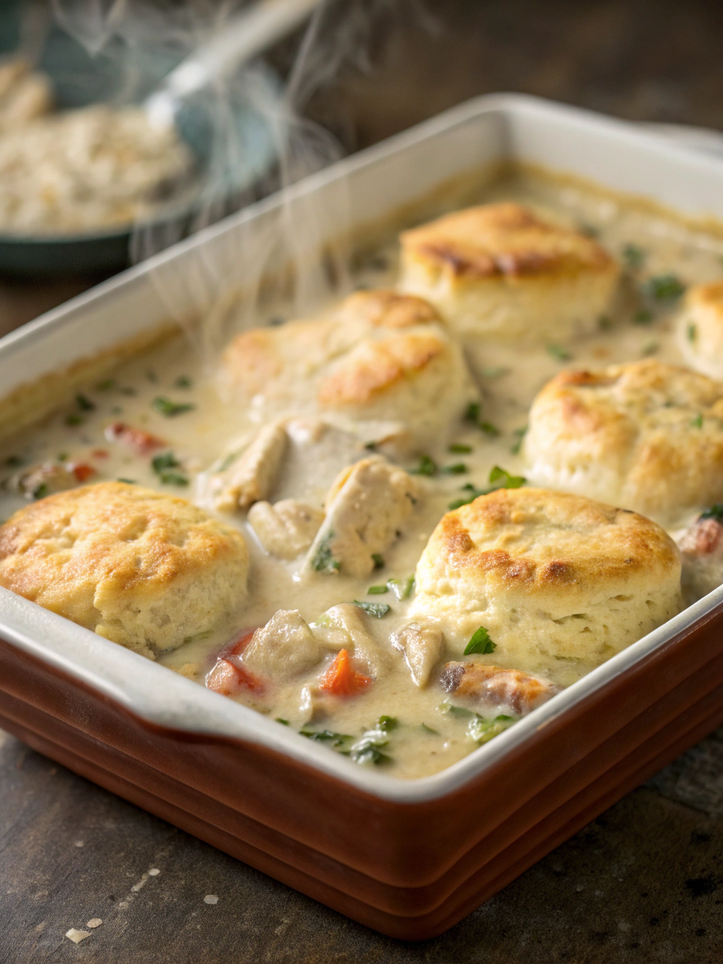 Whether you’re feeding a family on a busy weeknight or looking for a dish to bring to a potluck, this versatile casserole delivers satisfaction with every bite. The combination of tender chicken, vegetables, and flaky biscuits makes this a complete meal in one dish, saving you time without sacrificing flavor.