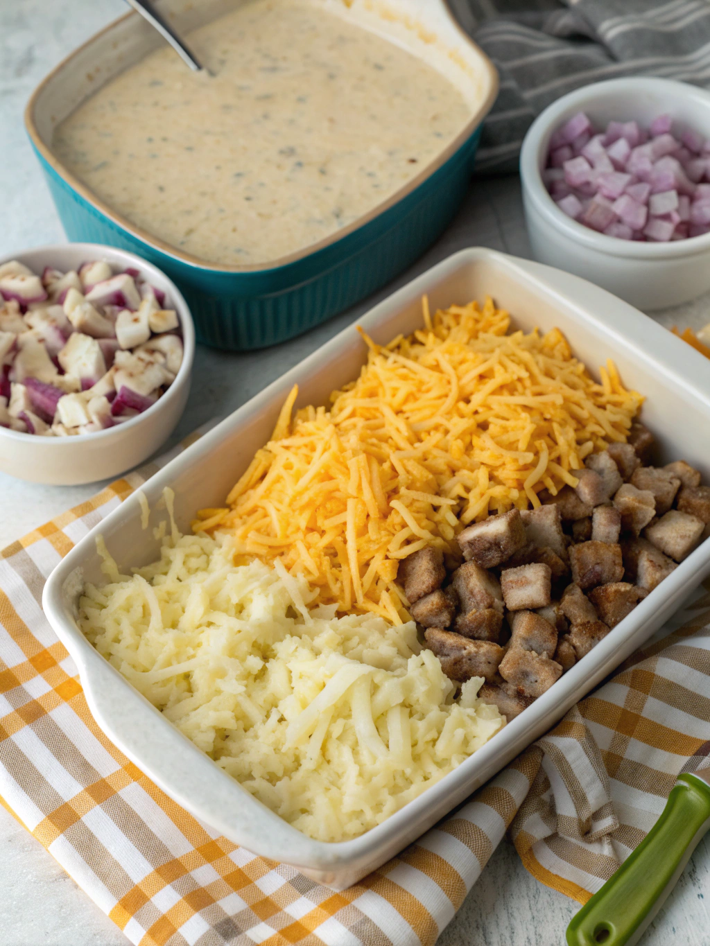 - Preheat your oven to 350°F (175°C) and lightly grease a 9x13-inch baking dish. Make sure your hash browns are fully thawed and pat dry with paper towels if needed.