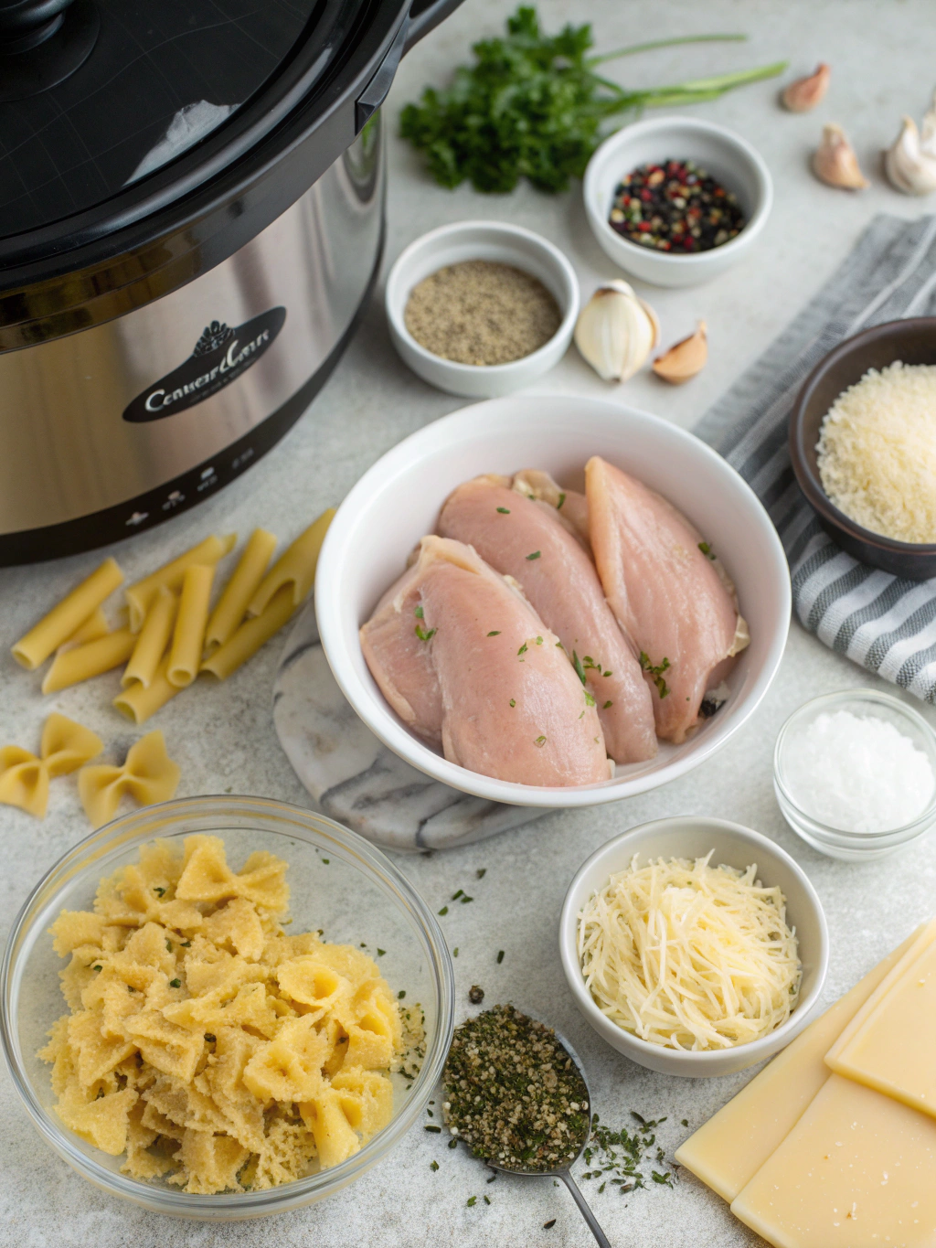 Ingredients List for Crockpot Garlic Parmesan Chicken Pasta