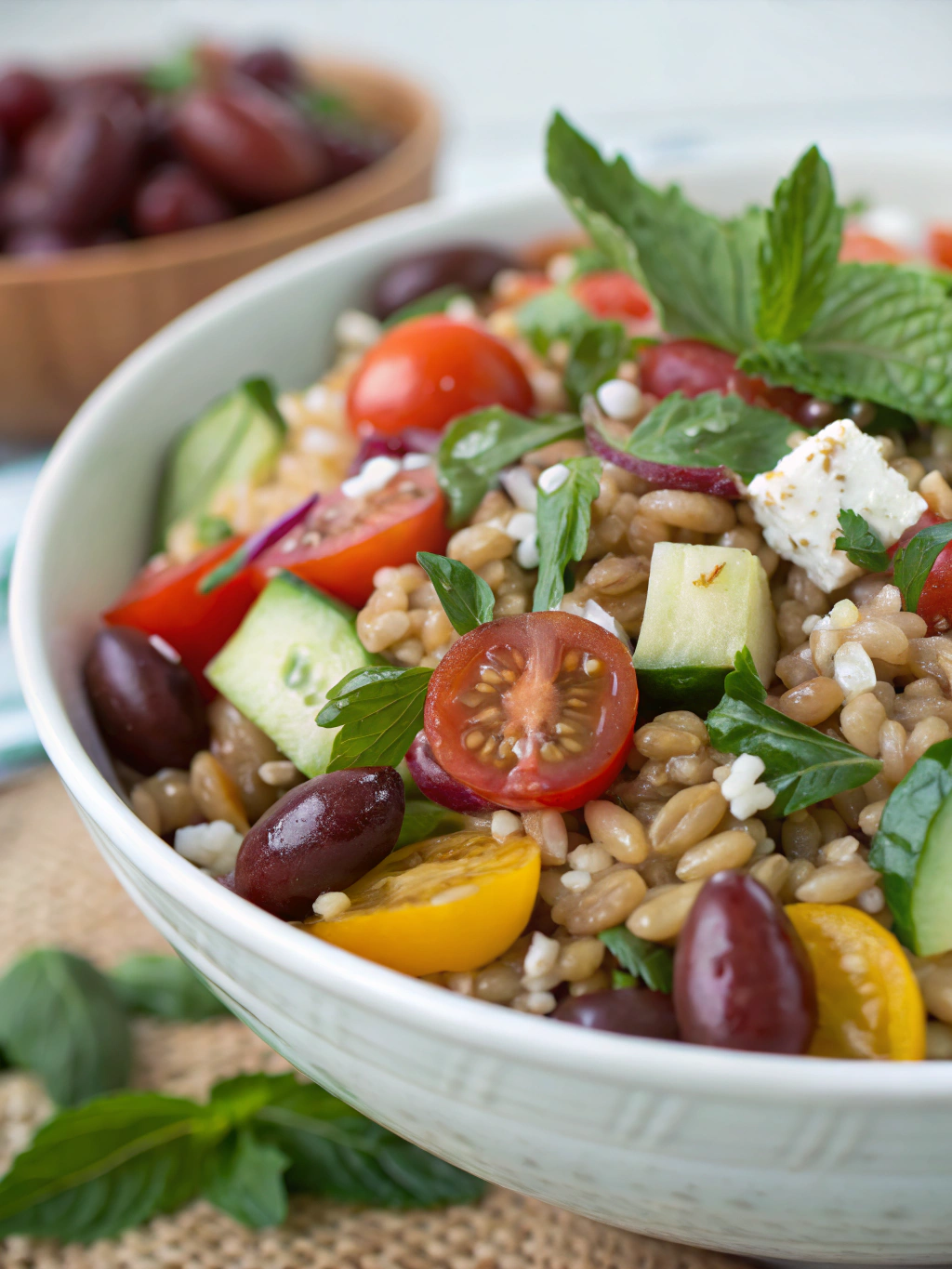 This Greek farro salad provides approximately 25% of your daily recommended iron intake and is rich in B vitamins, particularly niacin and folate.