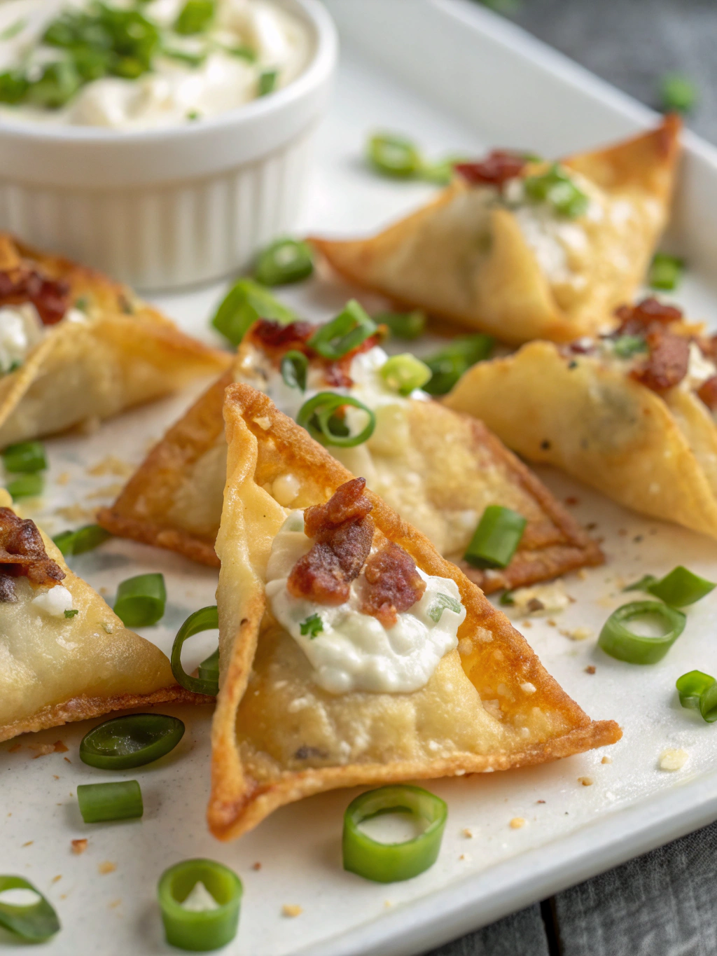 Allow the jalapeño popper wontons to cool for 3-5 minutes before serving. This brief rest helps the filling set slightly and prevents mouth burns from the hot cheese.