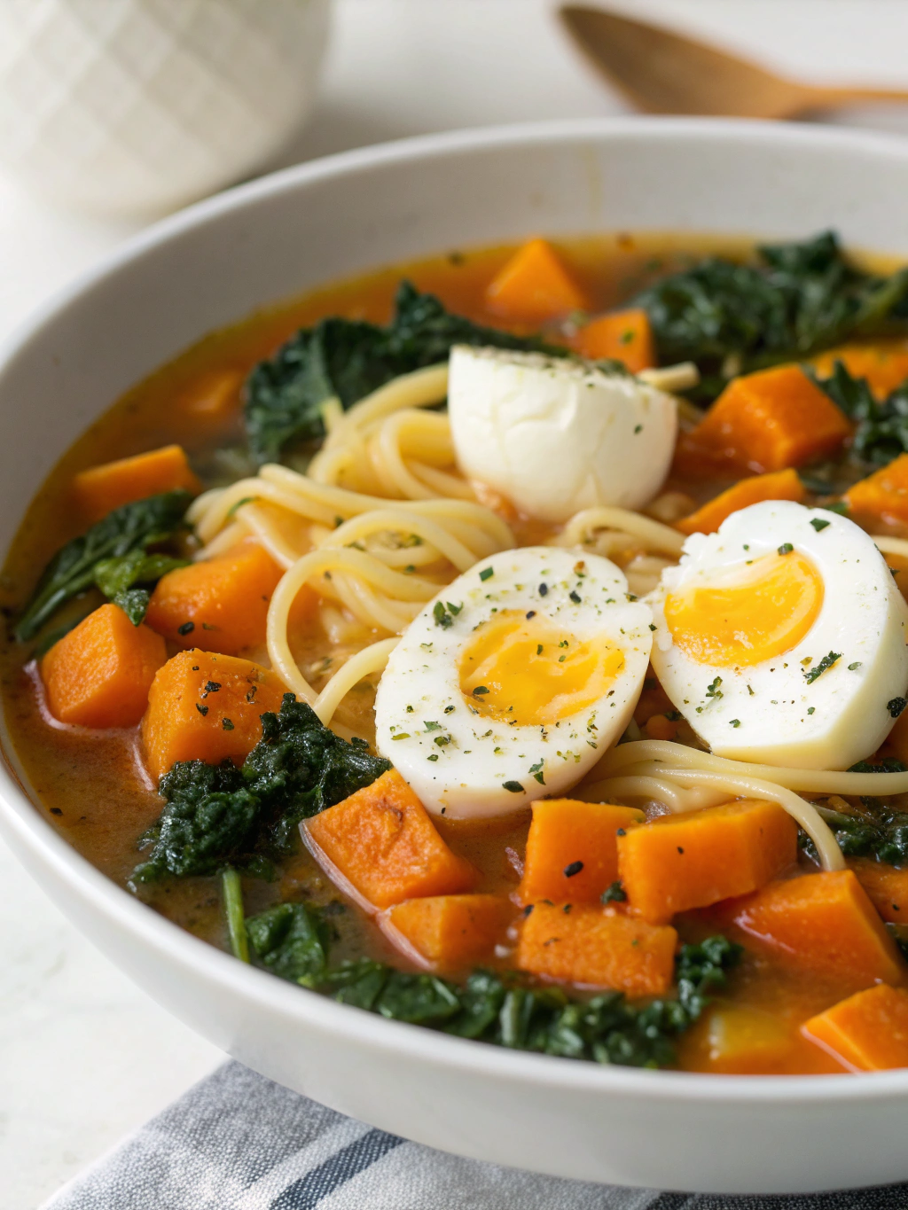 Healthier Alternatives for Kale and Sweet Potato Soup with Pasta and Poached Eggs