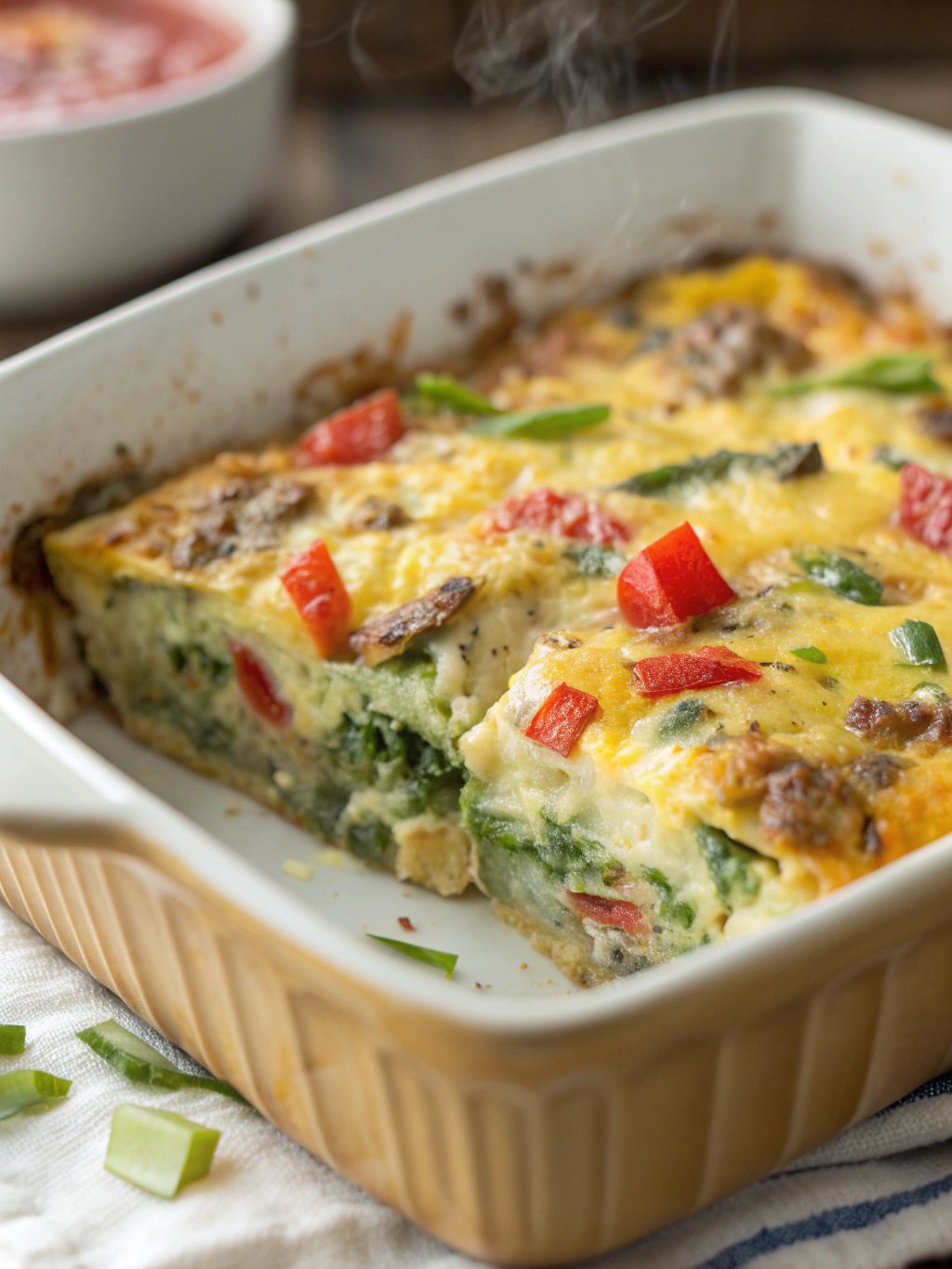 Allow the casserole to rest for 5 minutes before cutting into squares and serving. This resting period allows the eggs to set fully and makes for cleaner slices.