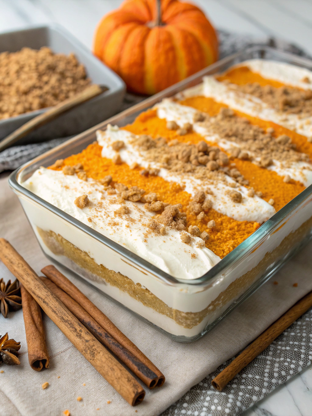 For make-ahead convenience, prepare the crust and cream cheese layer up to 2 days in advance, then add remaining layers the day before serving. The flavor actually improves after 24 hours as the spices have time to fully develop—making this an ideal prepare-ahead dessert for busy holiday schedules.