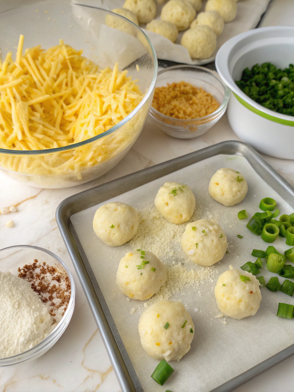 - Using a tablespoon or small ice cream scoop, portion out the potato mixture into 1 1/2-inch balls (about 24-30 total). Roll each portion between your palms to form uniform balls.