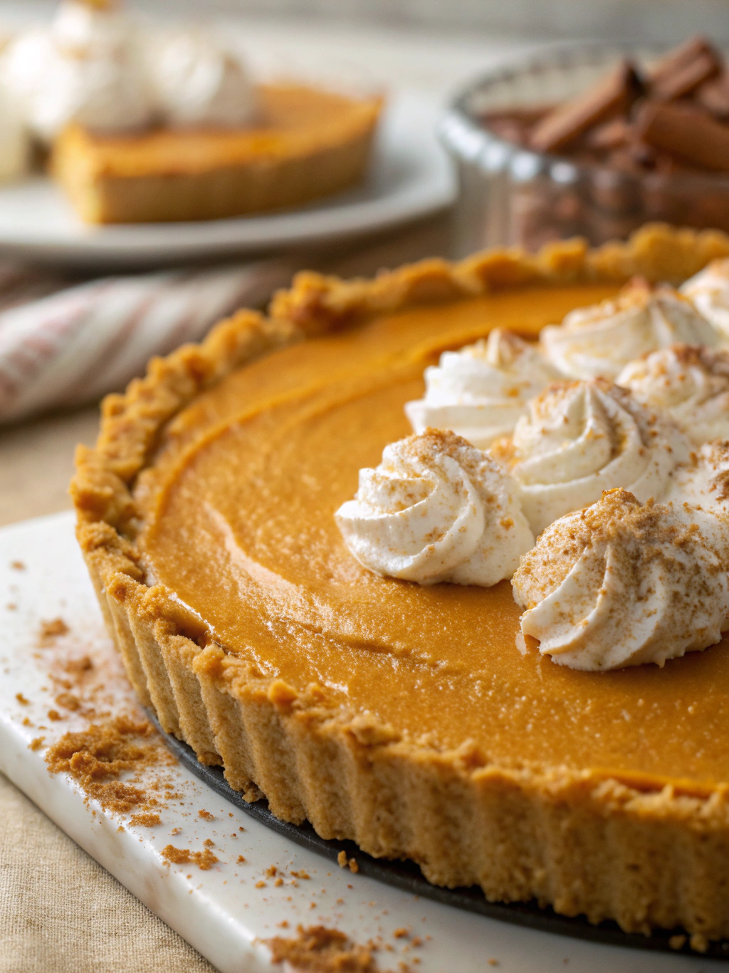 This no-bake version contains approximately 20% fewer calories than traditional baked pumpkin pie, primarily due to the lighter filling.