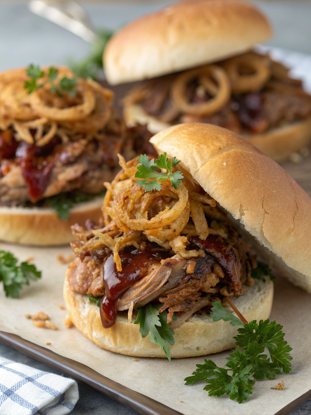 Lightly toast the brioche buns for added structure—this prevents the juicy pulled pork from making your buns soggy. Place a generous portion of pulled pork on the bottom half of each bun. Top with coleslaw, pickle slices, and red onion if desired. Drizzle with additional BBQ sauce before adding the top bun.