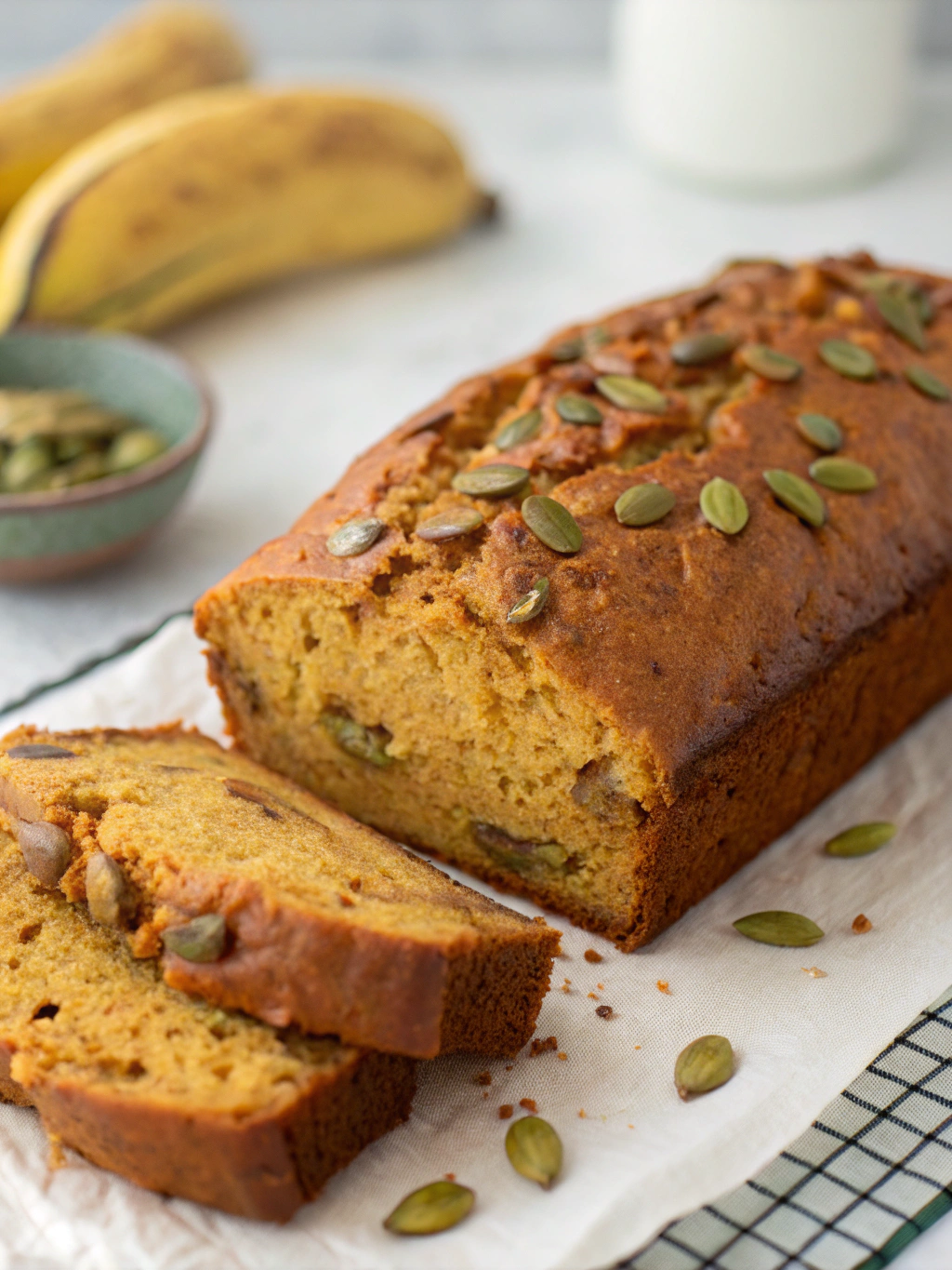 This pumpkin banana bread contains approximately 25% less sugar than traditional quick bread recipes while maintaining sweetness through the natural sugars in ripe bananas.