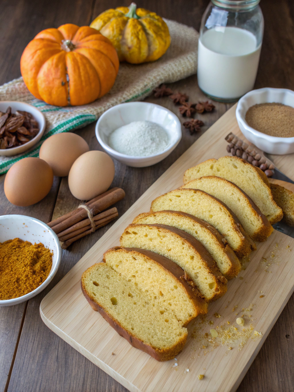 Using fresh bread: Fresh pumpkin bread will become mushy. Surveys show that day-old bread absorbs 30% more custard without falling apart.
