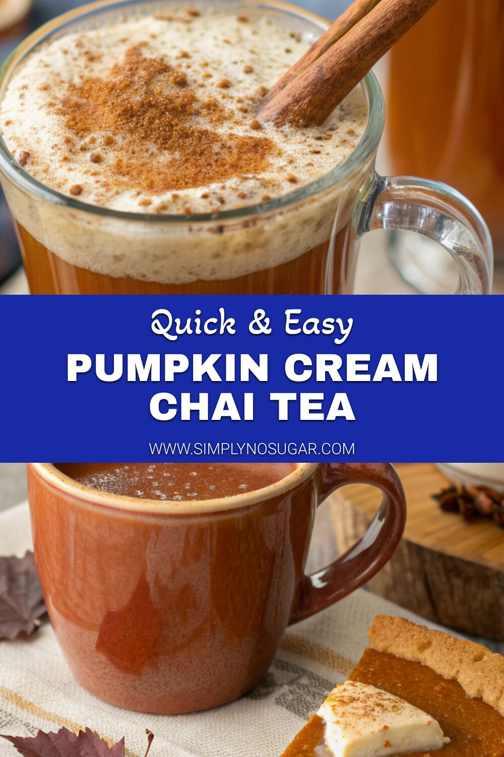 - Serve in clear glass mugs to showcase the beautiful layering effect between the chai tea and pumpkin cream.