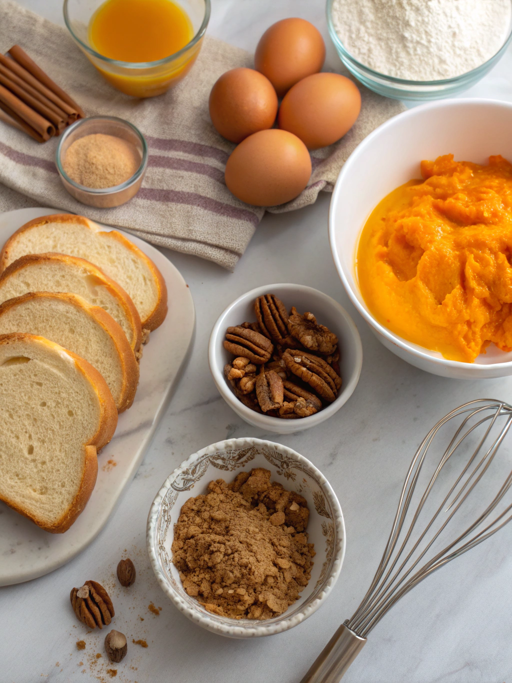 Yes! Cut bread into 1-inch cubes, soak in the pumpkin custard, transfer to a buttered baking dish, and refrigerate overnight. Bake at 350°F for 45-50 minutes for a delicious pumpkin French toast bake.