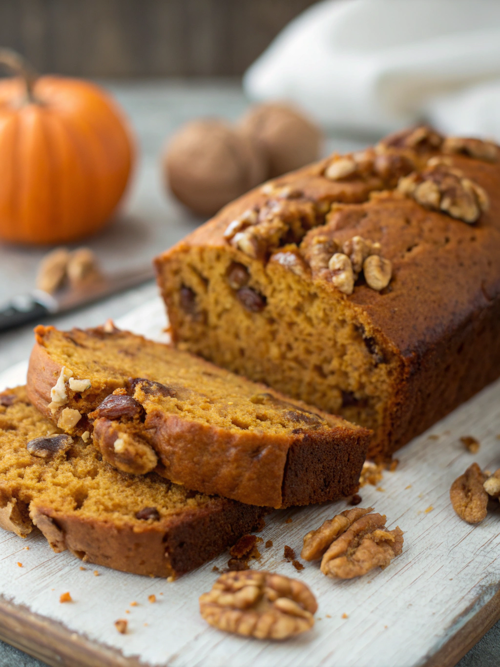 Data shows that the addition of walnuts increases the nutritional profile by adding 2.5g of heart-healthy omega-3 fatty acids per slice compared to standard pumpkin bread recipes.