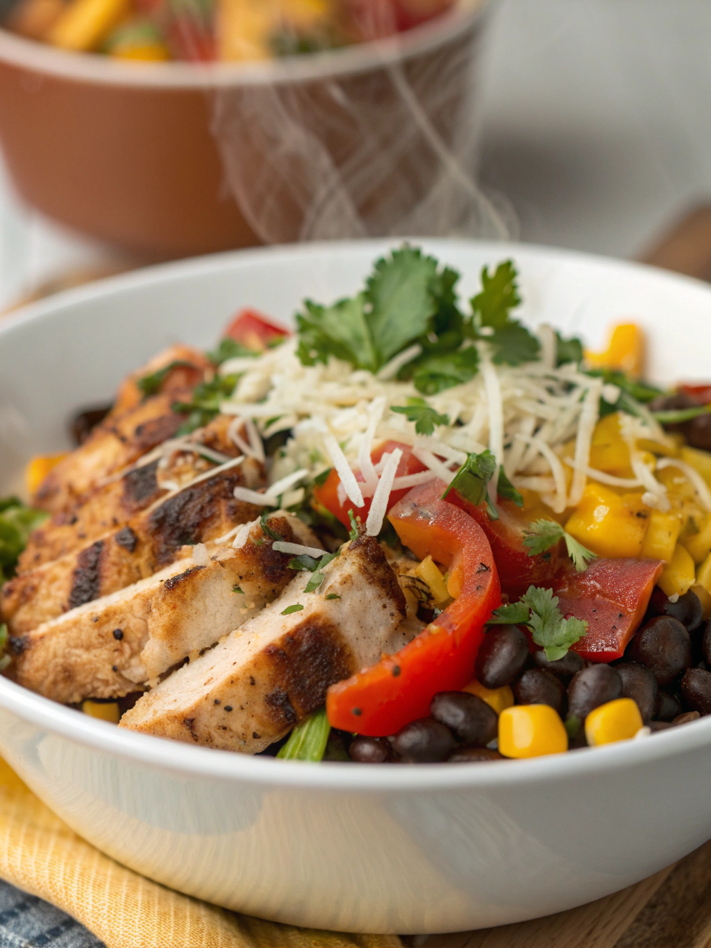 This Southwest chicken bowl provides approximately 30% of your daily protein needs and 42% of your recommended daily fiber intake, making it an exceptionally balanced meal that will keep you satisfied for hours.