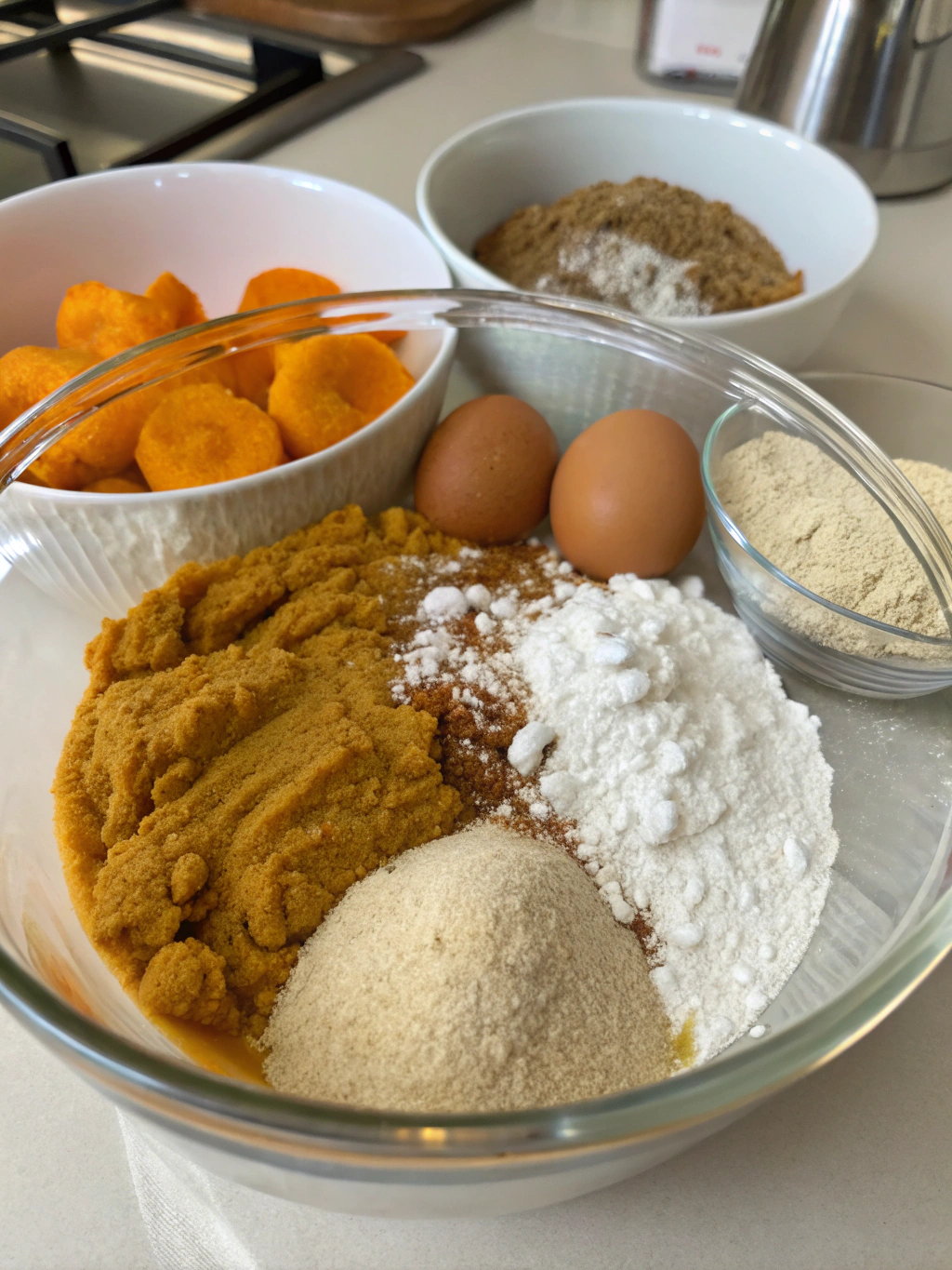 In a separate medium bowl, beat the eggs lightly. Add the pumpkin puree, unsweetened applesauce, almond milk, and vanilla extract. Whisk until smooth and well combined. The applesauce not only replaces oil but adds natural sweetness that enhances the pumpkin flavor.