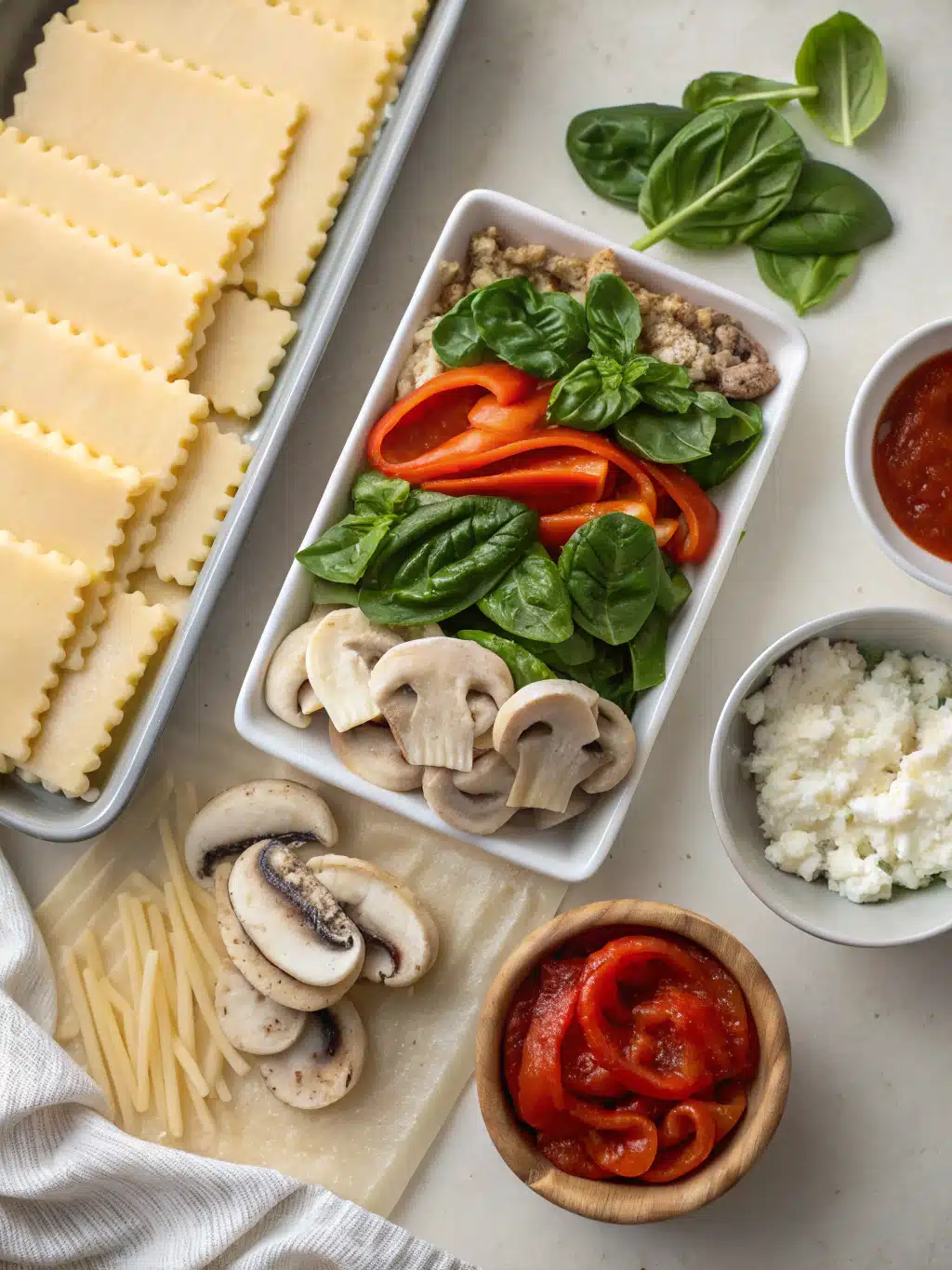 - Vegan alternatives: plant-based ricotta, nutritional yeast instead of Parmesan, and plant-based mozzarella