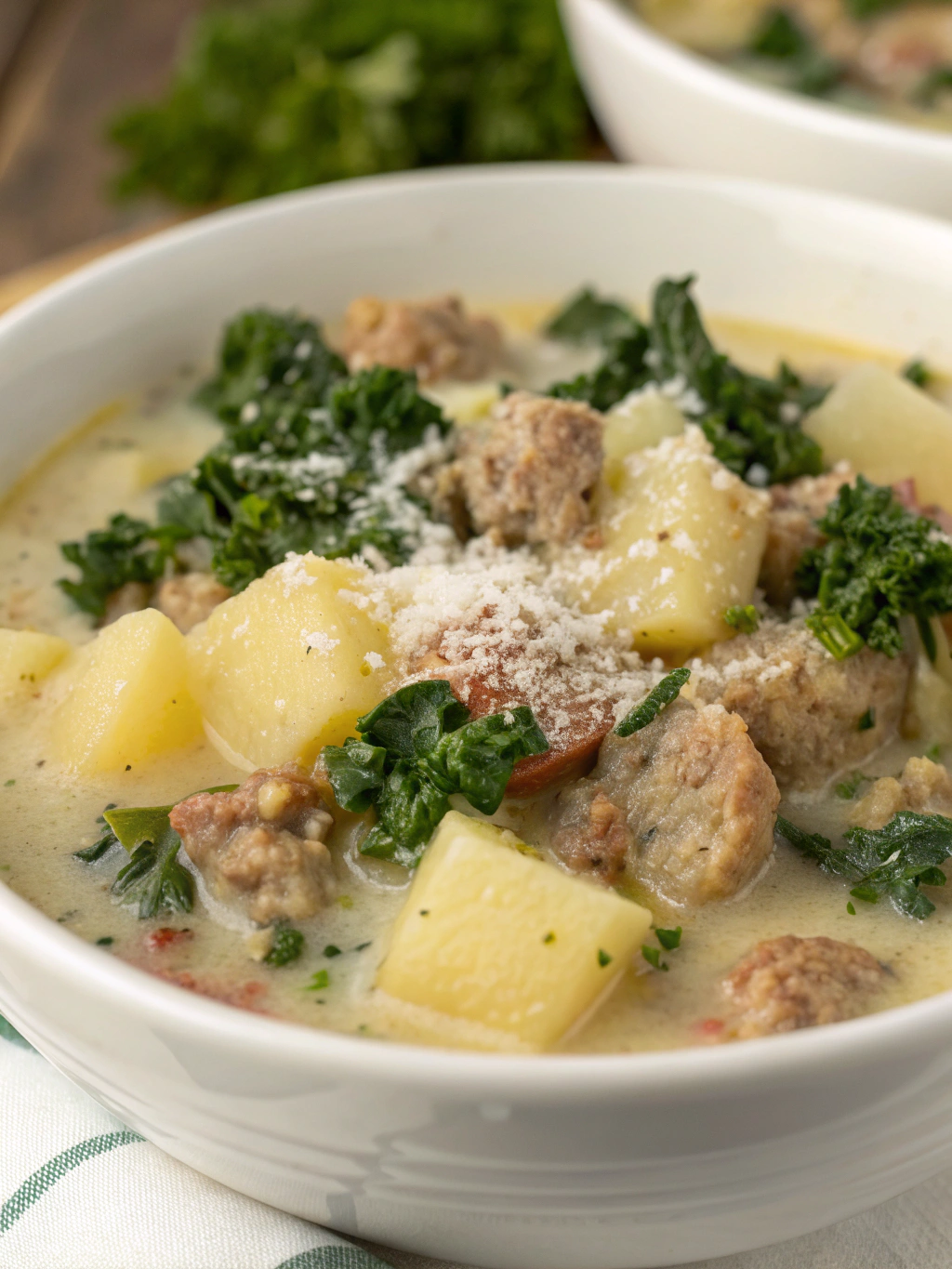 Stir in the grated Parmesan cheese until melted. Taste and adjust seasonings with salt and pepper as needed. Remove from heat and let the Zuppa Toscana rest for 5 minutes before serving—this brief rest allows the flavors to settle and intensify. Ladle into warm bowls and garnish with additional Parmesan cheese and a light sprinkle of red pepper flakes if desired.